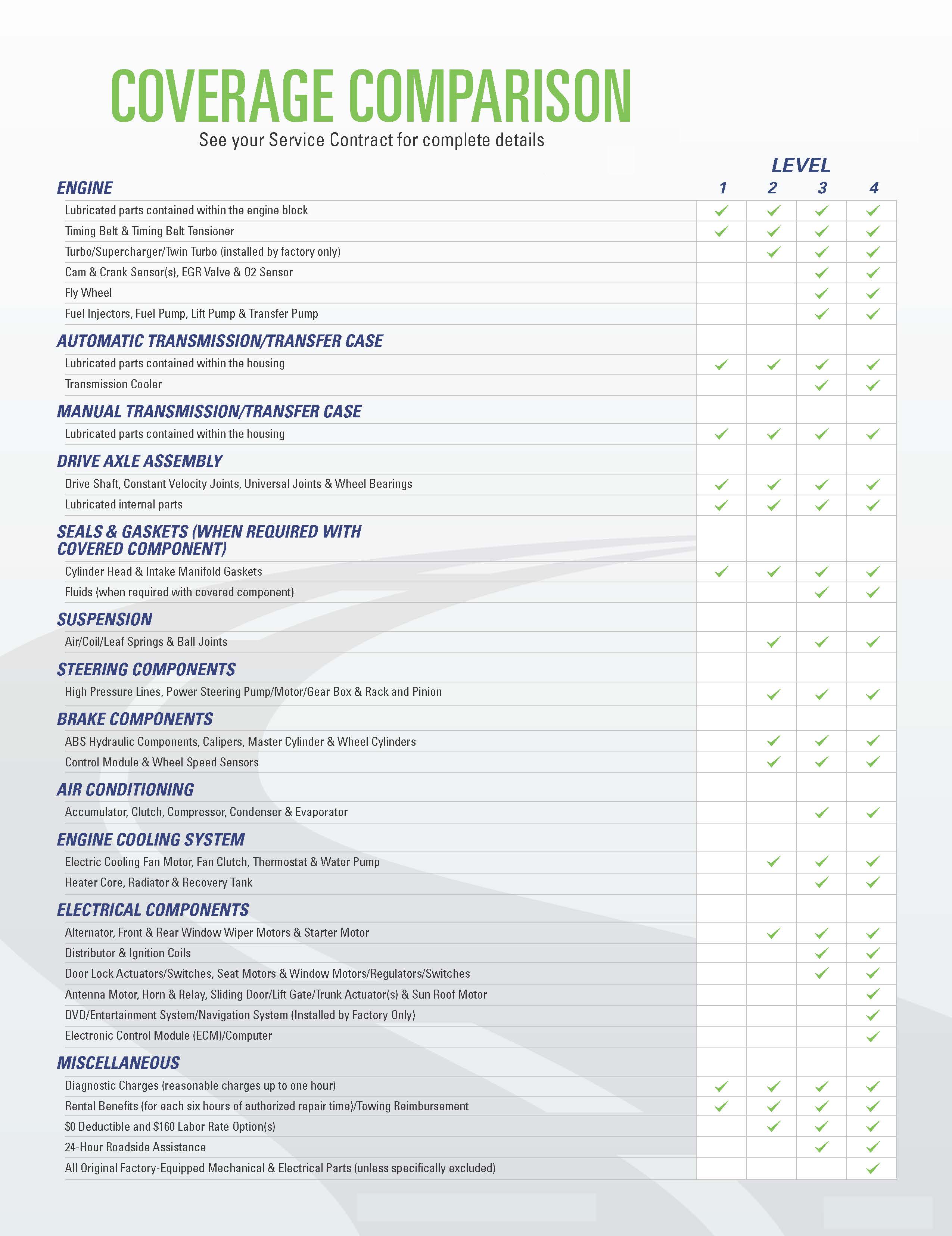 Warranty details are shown in the chart below for vehicles we sell. Contact us for pricing.